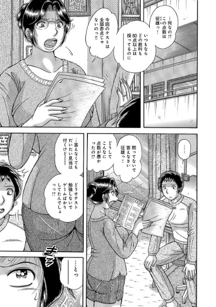 母に成績の低下をなじられる主人公。母のセックスの声がうるさくて勉強に集中できなかった