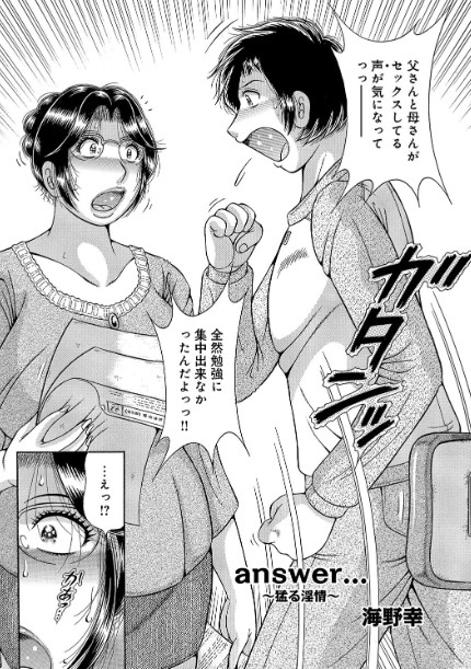 と正直に答える息子。頬を赤らめる母。息子はさらに自分の勃起した一物を見せながら母に迫っていく。「answer〜猛る淫情〜」